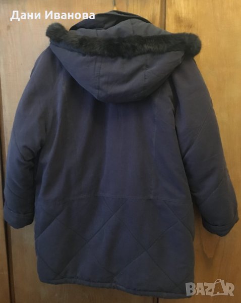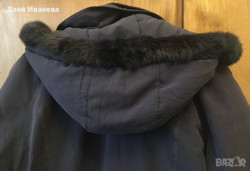 Дамска зимна ватирана шуба с качулка - тъмно синя → Обява 34717458