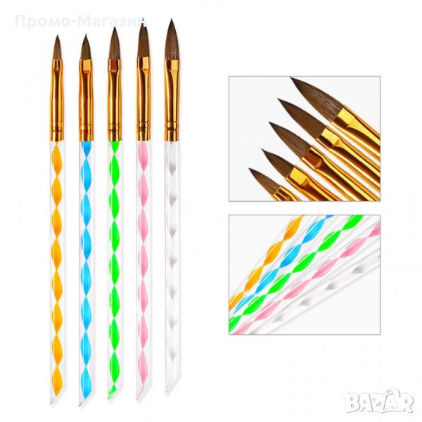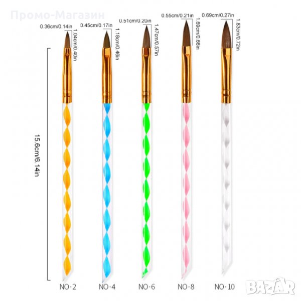 Комплект четки за работа с акрил, подходящи за акрилна ноктопластика, декорации на нокти и укрепване на естествени нокти.