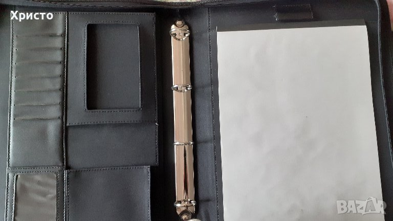 Продавам чанта бизнес черна с изтеглящи се дръжки красив дизайн чисто нова. Цвят черен с украсителни бели шевове. Бележник за писане, място за химикалка, кредитни карти, визитки и джоб за други неща. Затваря се с цип и има метални рингове за листове . В затворен вид с прибрани дръжки размерът е 36х30х4 см. Висококачествена изкуствена кожа. На металната пластина има защитно фолио. Не е използвана въобще.