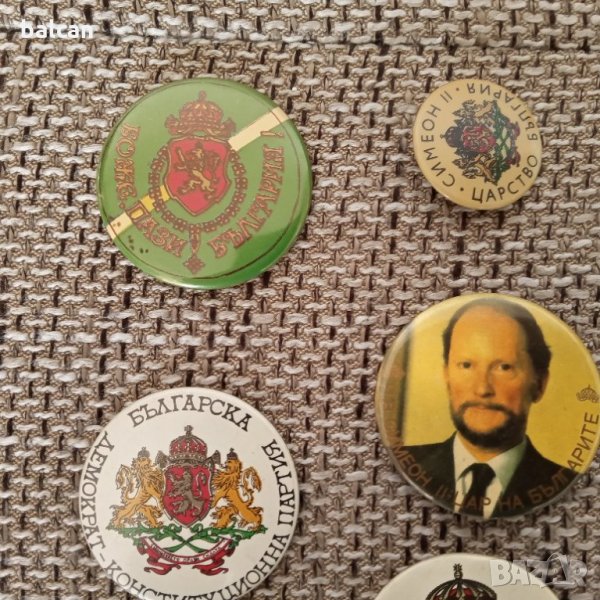 Значките са на партията на Симеон II. Цената е обща за седемте по отделно след договаряне.