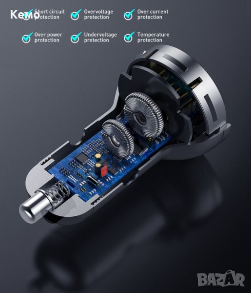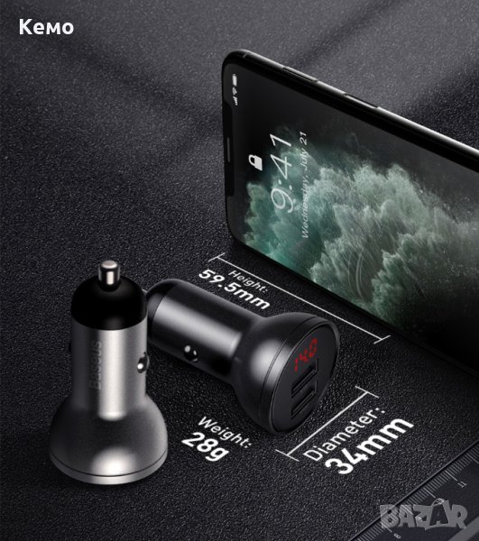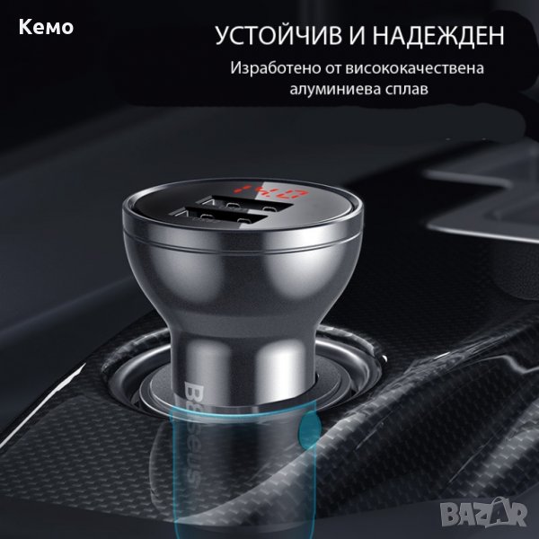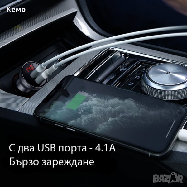 Бързо зарядно за мобилен телефон за кола с LED дисплей