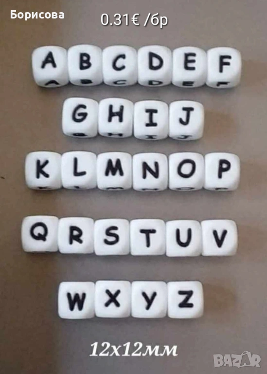 Силиконови мъниста букви за бебешка залъгалка → Обява 34726208