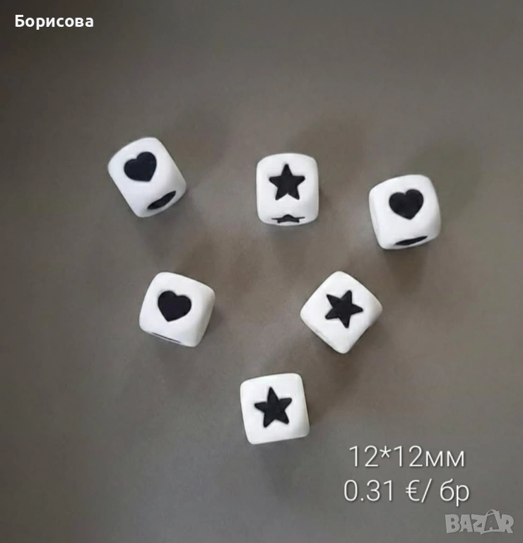 Цена за 1 буква , мънисто сърце , мънисто звезда- 0.31 €