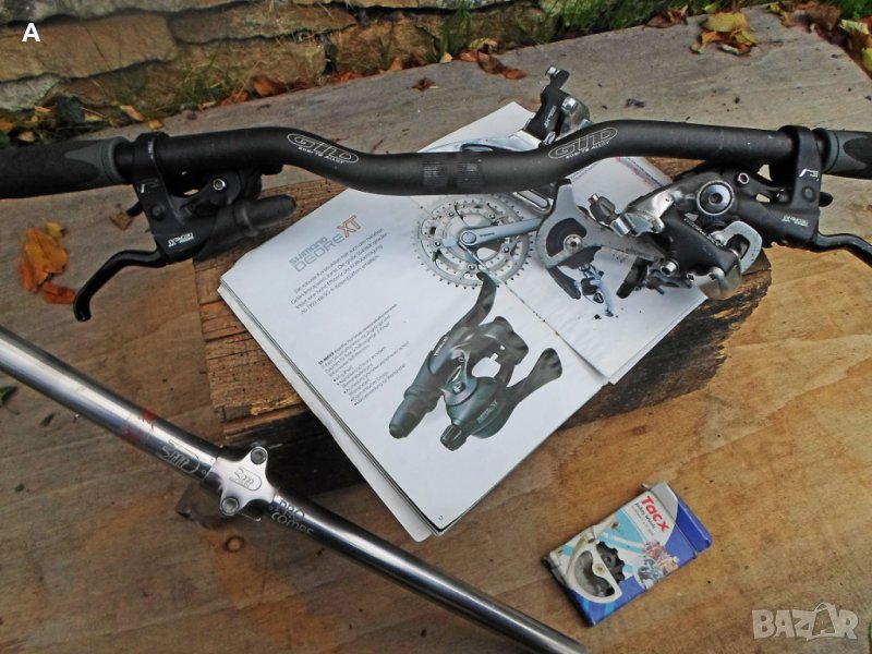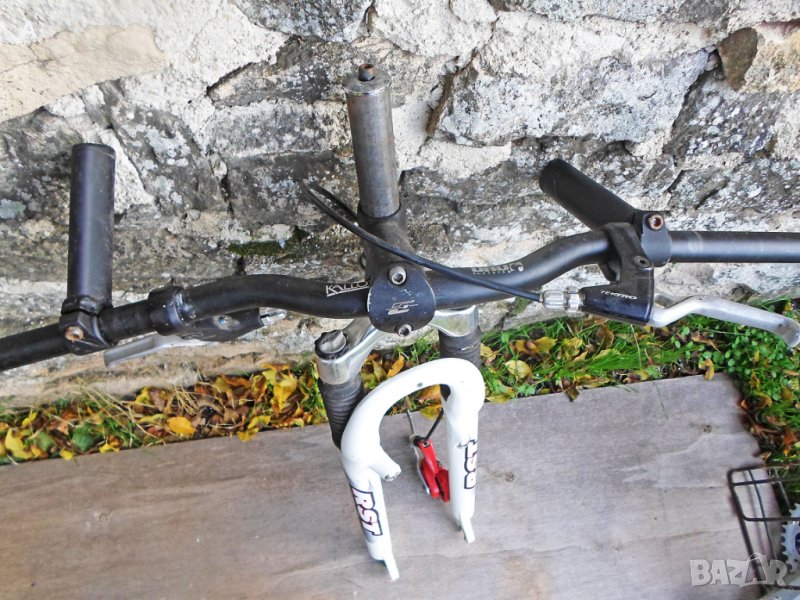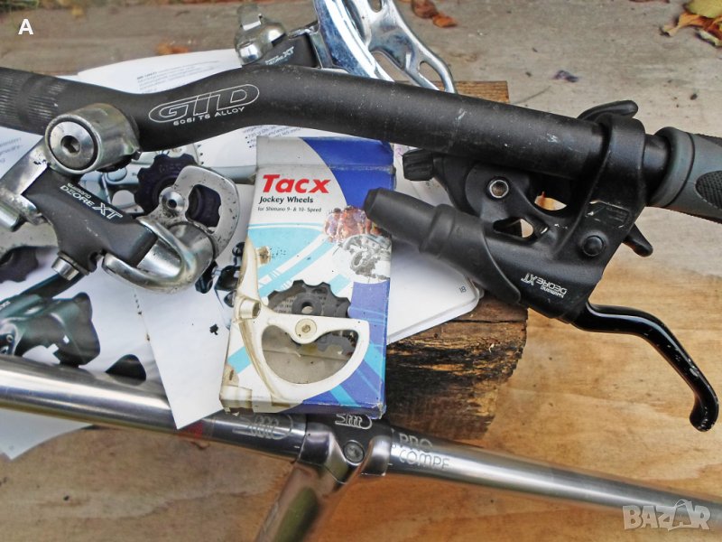 RST Capa LT амортисьорна вилка в много добро състояние. //Продадена//.Налични кормило с лапа и спирачните лостчета със спирачката. Капли за V brake /предната и за диск/ в отлично състояние, с почти нови гуми/2,0/и касета 9 ка. Цена 90 лв. XT,LX задни дерайльори по 40 лв .XT предни дерайльори по 35 лв.XT скорости 3/7 140 лв*//Командите продадени//,останали от мой проект/сменени ролки/кормило с нови грипове.