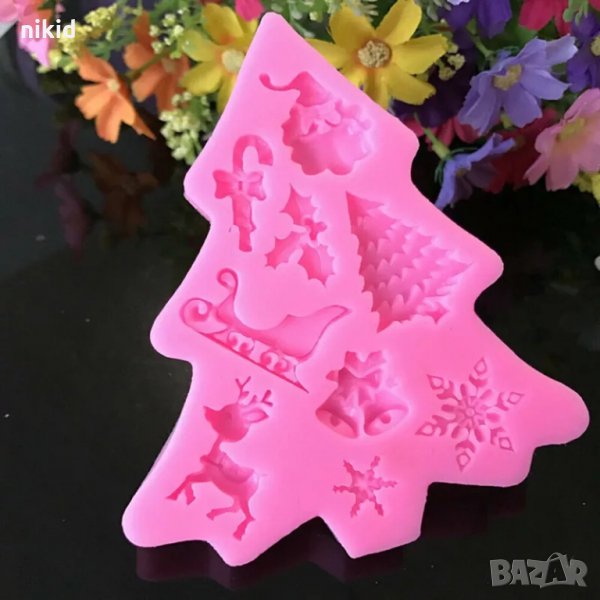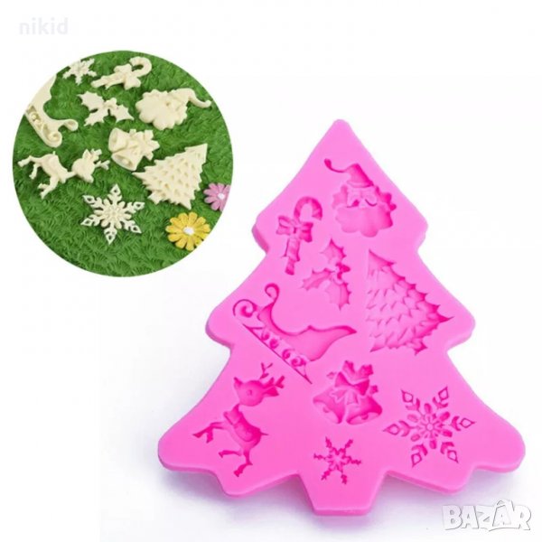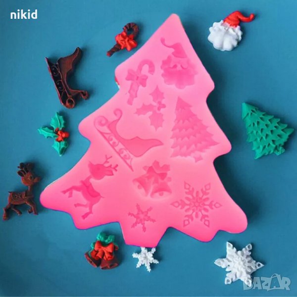 Коледен елха с елен снежинка шейна имел камбанки силиконов молд форма фондан → Обява 34727716