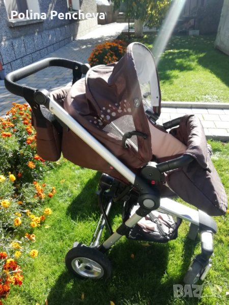 Много запазена бебешка количка с твърд кош за новородено, който не е ползван и е чисто нов. Изключително лека и маневрена, няма никакви забележки. Допълнително има сенник, дъждобран и чанта.