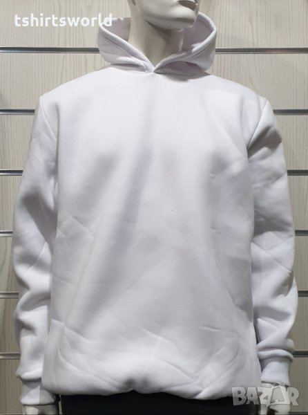 Нов мъжки бял суичър с качулка и джобчета