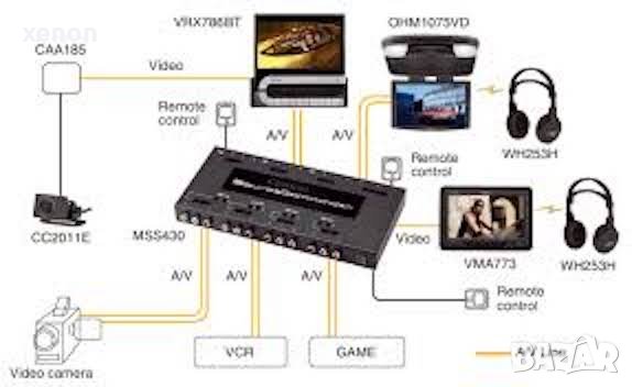 Clarion MSS433 е пълен многостанционен A/V селектор, специално проектиран за автомобилна среда. Когато се използва с командни станции, системата ви позволява да управлявате множество зони, с независим избор на аудио/видео (до четири източника) и свързване на до три монитора, способни да показват различни аудио/видео програми.