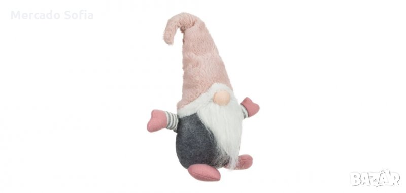 Коледна декоративна фигура гнома на Дядо Коледа със сива носия, розова кожена шапка и дълга брада.Може да седи на прозореца, на рафт и да допълва празничната украса.