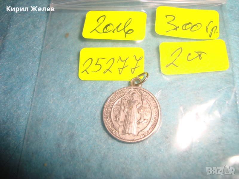 СТАР ДВУСТРАНЕН РИМОКАТОЛИЧЕСКИ РЯДЪК МЕДАЛЬОН СРЕБРО или ПОСРЕБРЕН ИКОНКА 25277