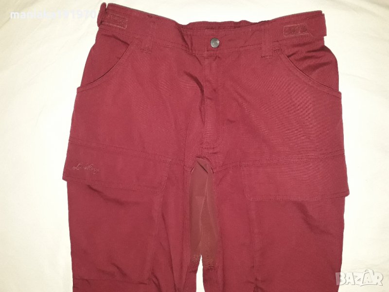 Lundhags Traverse 2 JR Pant - произвеждащи изключително качествени облекла и обувки Размер - 170/176 см. Четири предни джоба.Регулируеми долу на глезена.Еластична (стреч) материя на дупето ,под четала,коленете и сгъвките на коленете отзад.Оластечен отзад на кръста и регулируем с лепки.Състав : 65% полиестер и 35% памук.На разтегливата материя: 90% полиестер и 10% еластан.Цвят - два нюанса на винено като на тъмните снимки.В перфектно състояние !