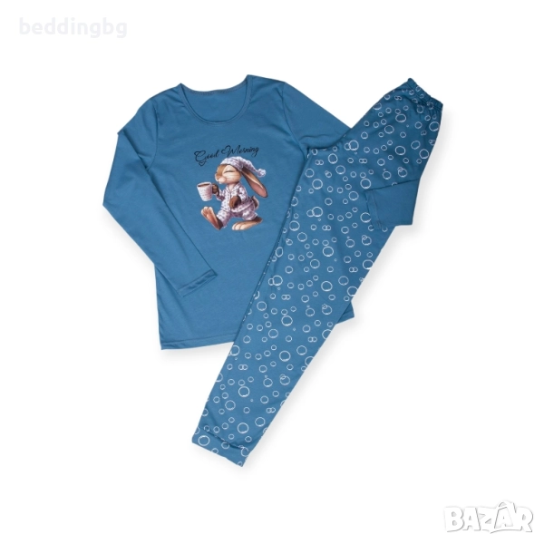 Сладки зайчета с надпис "Good Morning" (в светлосиньо и тъмносиньо).