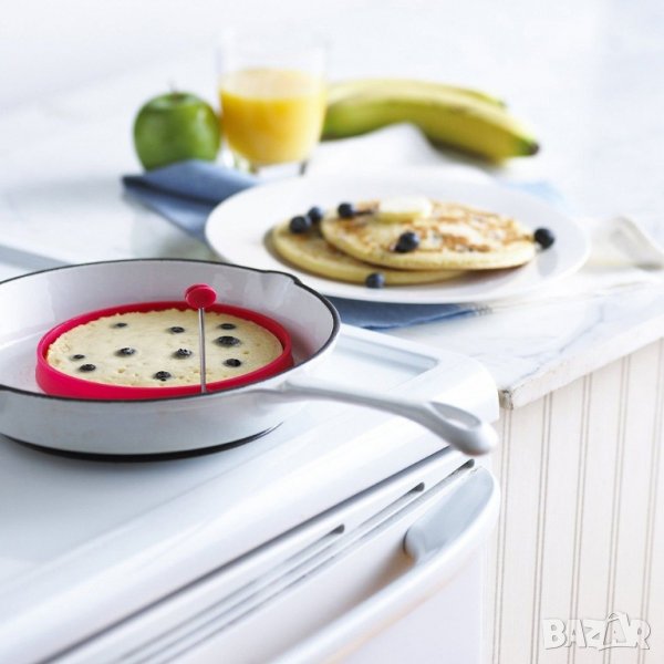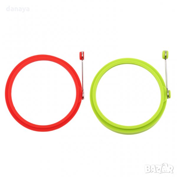 Комплект от два броя силиконови рингове за перфектно кръгли омлети, пържени яйца или палачинки. С удобна дръжка, която позволява лесно поставяне и махане. Незалепващо покритие.