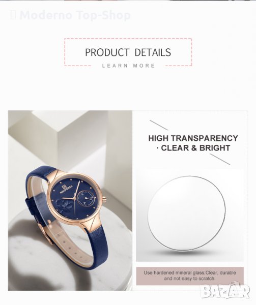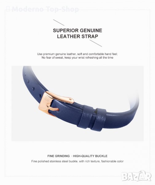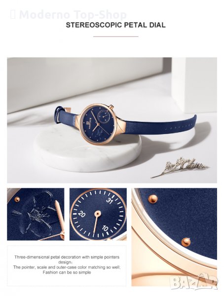 Страхотен модерен дамски часовник със свежа визия. Задвижва се от японски кварцов механизъм MIOTA . Има корпус от специалната сплав на NAVIFORCE супер метал,каишка от естественна кожа с високо качество и стъкло от минерал-кристал устойчиво на удари и надрасквания. Водоустойчивост 3 АТМ.