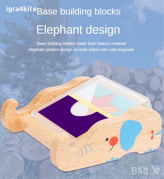 Стойката на играта е направена от висококачествено масивно дърво с форма на слонче,