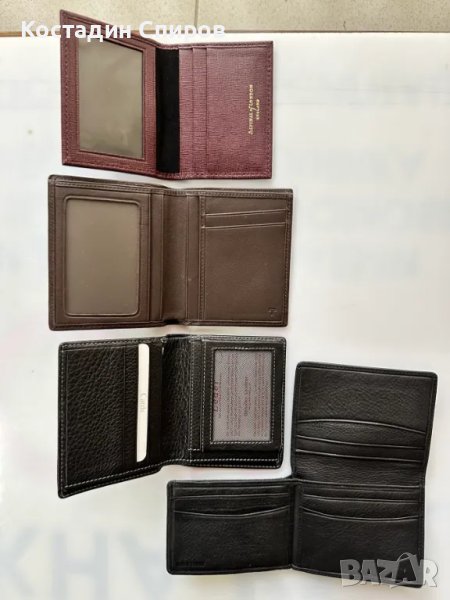 Продавам 4 броя различни картодържатели - портмонета- калъфчета за документи. Нови, неупотребявани, без опаковка с етикети. Цената на всеки може да видите на първата снимка.