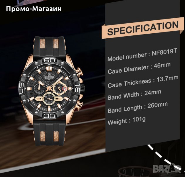 Часовник NAVIFORCE NF8019T RGBB се предлага в луксозна брандирана кутия, гаранция,бърза доставка в рамките на 1-2 работни дни.