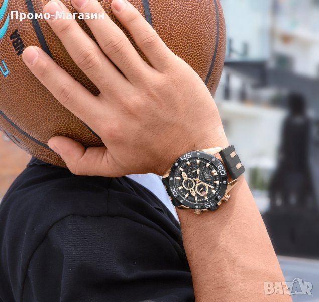 мъжки часовник с луксозна визия. Задвижва се от японски кварцов механизъм