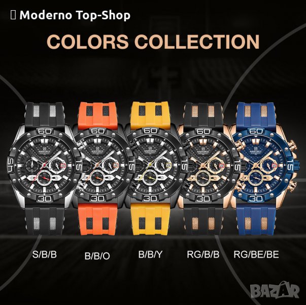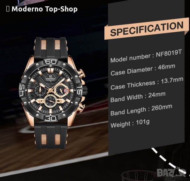 Часовник NAVIFORCE NF8019T RGBB се предлага в луксозна брандирана кутия, гаранция,бърза доставка в рамките на 1-2 работни дни.