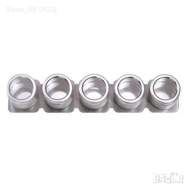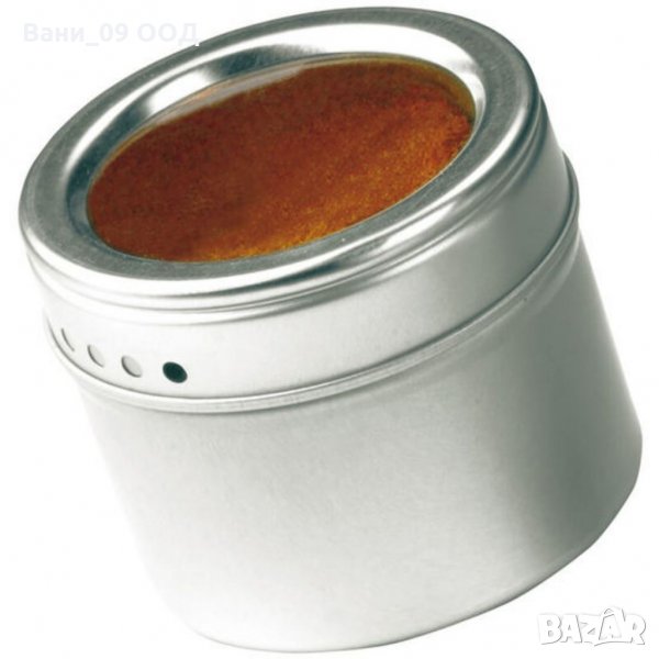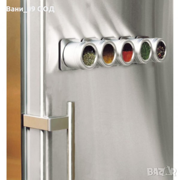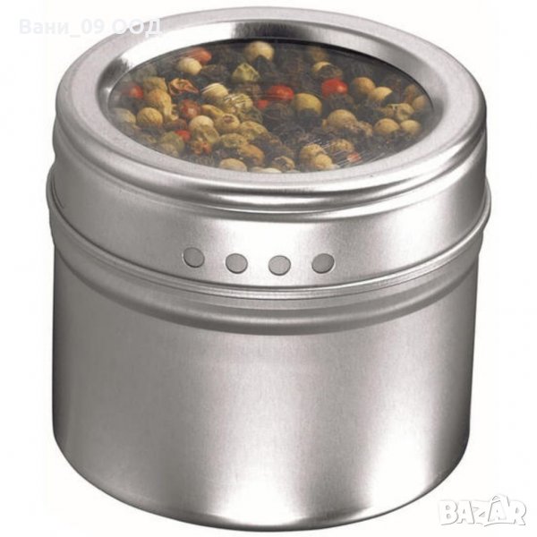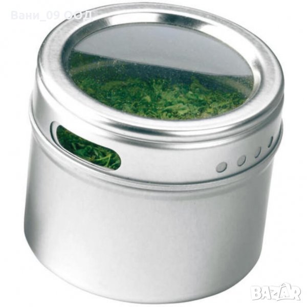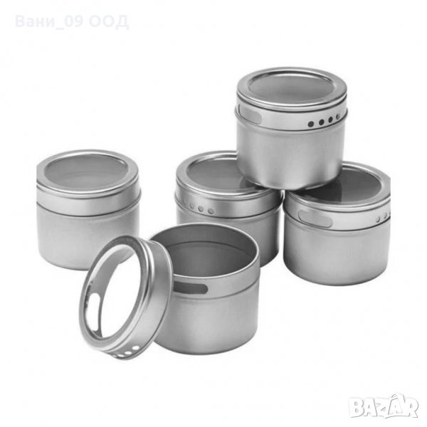 Метални канистери за подправки , чието използване е подходящ и лесен начин за съхранение. Малките метални контейнери са с големина 6см, а металната лайсна под тях е с размер 36см. Тези характеристики позволяват прикрепянето на 5 кутии към магнитната основа. Контейнерите за подправки могат да бъдат поставени на хладилника или "залепени" за стената, посредством магнитната метална рамка, към която се прикрепят кутиите. Капакът на контейнерите може да се върти, регулирайки се при отваряне. Металните контейнери са особено удачни за използване във всяко домакинство, поради своите функционални характеристики. Те не се поддават на деформация, вследствие на продължителна употреба или удари. Освен това, металните кутии за подправки не задържат миризми, което е тяхното основно предимство, пред останалите видове начини за съхранение на продукти, предлагани на пазара.