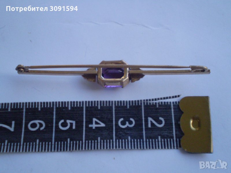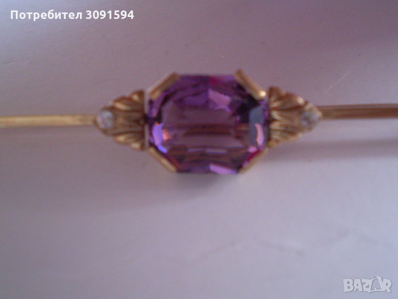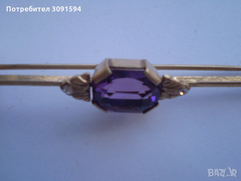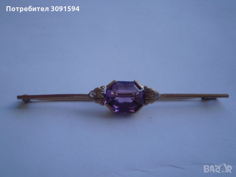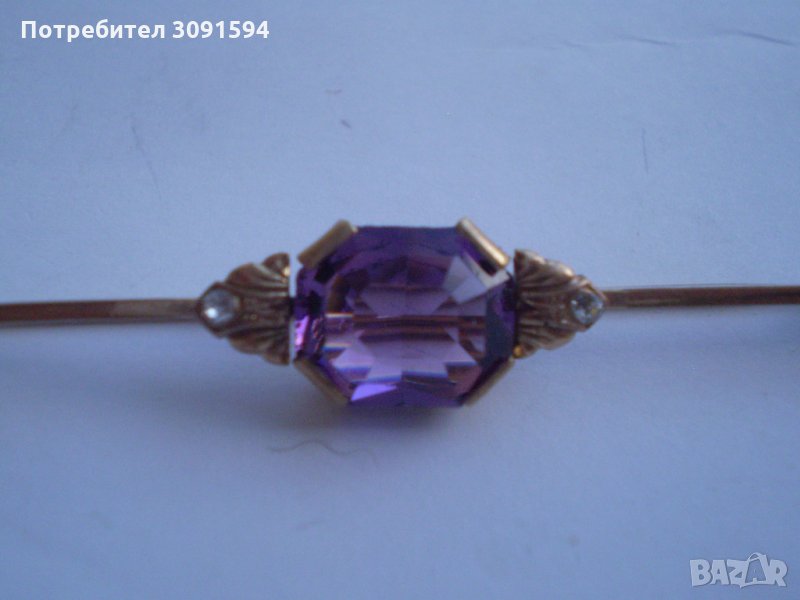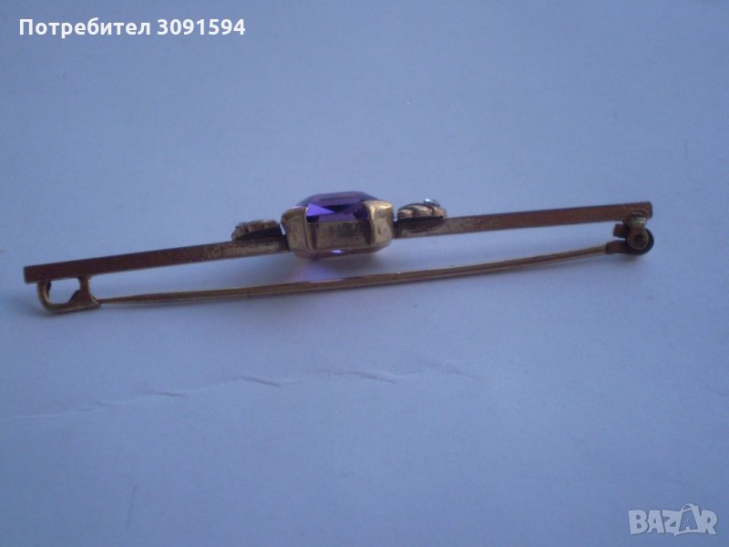Старинна позлатена игла брошка с аметист → Обява 34763843
