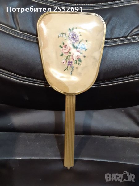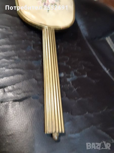 Стилно, кристално , старинно огледало с метална дръжка и гравирана рамка. Размери- 29/12/1см.