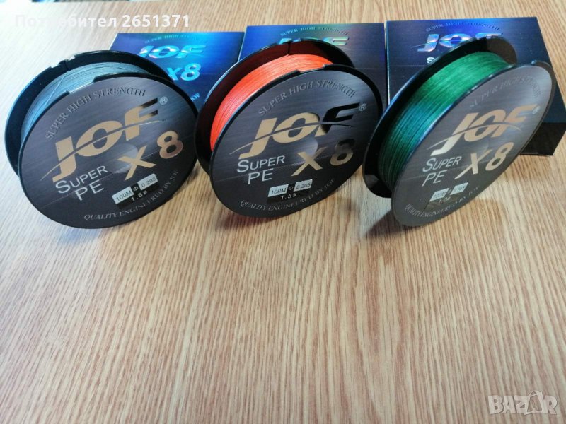 8-нишково плетено влакно за риболов JOF. Невидимо във водата и бързо потъващо, устойчиво на механично протъркване. Висока здравина на възела и висока устойчивост на триене.