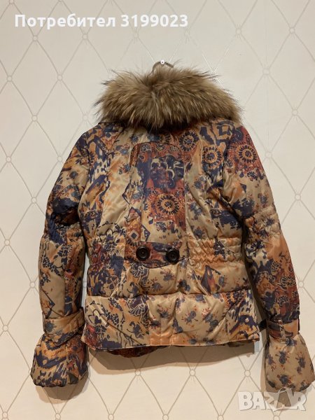 Якето е с естествен гъши пух и естествена лисица ,която се сваля .Стои късо и вталено .Купувано за 220лв