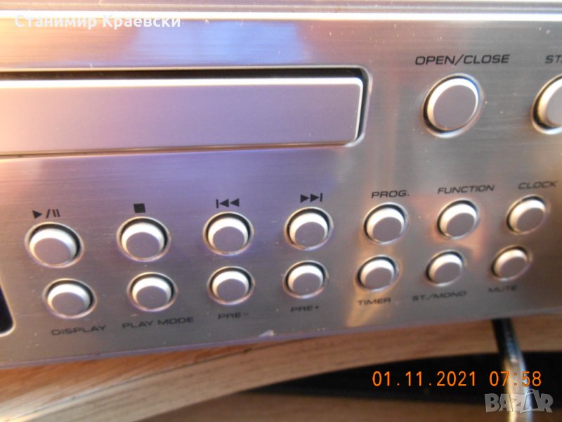 Радио часовника работи без проблемно Има леки забележки по корпуса Липсва модула за монтаж под шкаф Настолно има крак и може да работи и тъка Радиото работи - диска също - входа не съм го тествал но предполагам че работи Звукът е доста мощен макар и да е 2 х 5 вата