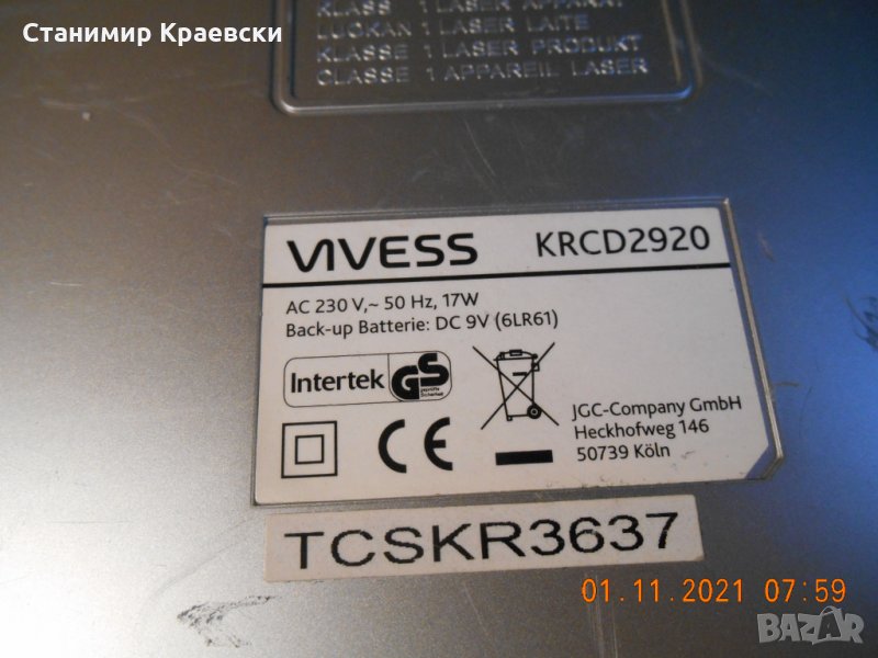 Vivess KRCD 2920 - radio clock cd stereo system, снимка 1 - Други - 34776808  Vivess KRCD 2920 - radio clock cd stereo system, снимка 2 - Други - 34776808  Vivess KRCD 2920 - radio clock cd stereo system, снимка 3 - Други - 34776808  Vivess KRCD 2920 - radio clock cd stereo system, снимка 4 - Други - 34776808  Vivess KRCD 2920 - radio clock cd stereo system, снимка 5 - Други - 34776808  Vivess KRCD 2920 - radio clock cd stereo system, снимка 6 - Други - 34776808  Vivess KRCD 2920 - radio clock cd stereo system, снимка 7 - Други - 34776808  Vivess KRCD 2920 - radio clock cd stereo system, снимка 8 - Други - 34776808  Vivess KRCD 2920 - radio clock cd stereo system, снимка 9 - Други - 34776808  Vivess KRCD 2920 - radio clock cd stereo system, снимка 10 - Други - 34776808  Vivess KRCD 2920 - radio clock cd stereo system, снимка 11 - Други - 34776808 1/11