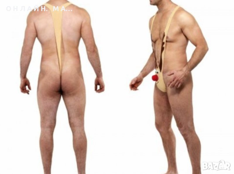 Изненадайте любим човек с това забавно бельо - за мъже! Това са Mankini от северен елен с червен нос, точно като Рудолф и са идеални за малко смях или... директно в спалнята.