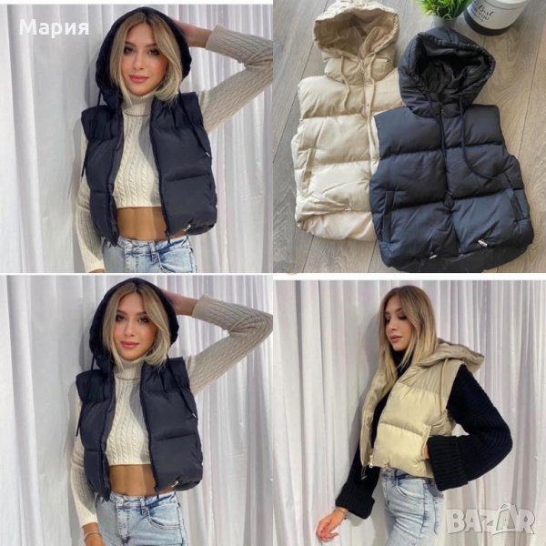 Дамски елек с качулка черен или бежов. XS, S, M, L, XL. Нови