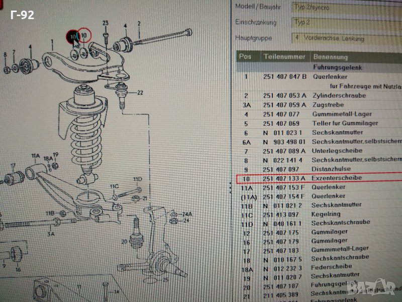 251407133A**NEU**VAG** VW TRANSPORTER III **Шайба за регулиране преден носач (горен)*