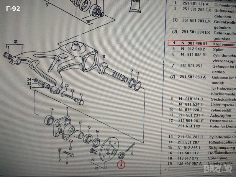 N90149601**NEU**VAG**Задната главина гайка *T2*T3 VW TRANSPORTER III 1.6-2.1 05.1960-07.1992