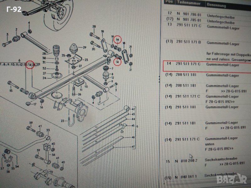 291511171C**NEU**VAG**VW LT LT 28-55 **Втулка, ресор Задна ( 14мм)**05.1975-07.1997