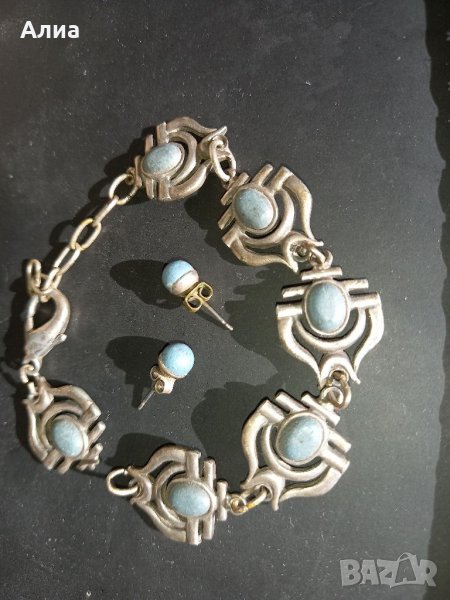 2. Гривничката не е сребърна и е скъсана, обечките и гривната са със син корал. 14 лв. Испански дизайнер.