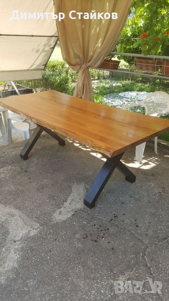 Изработвалм маси от дъб размерите са 200см на 90см дебелина на плота 4.5см краката са от профилно желязо 3мм. Имам налична.