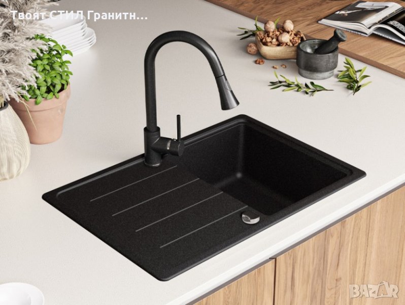 Кухненска Мивка от гранит модел Копенхаген Smart Черна само 139 Е