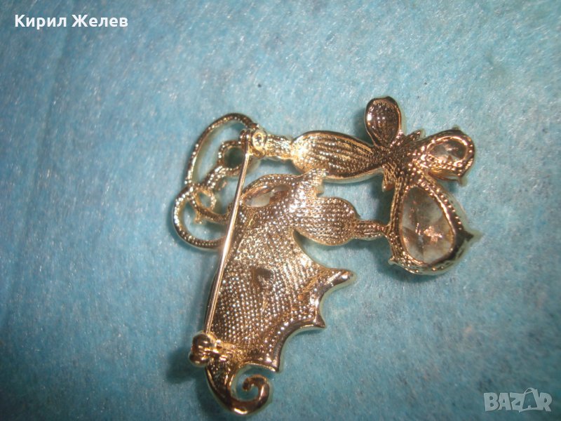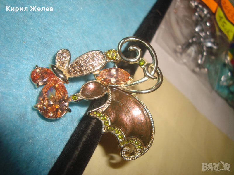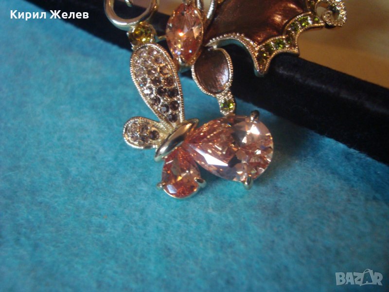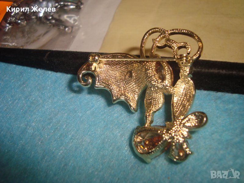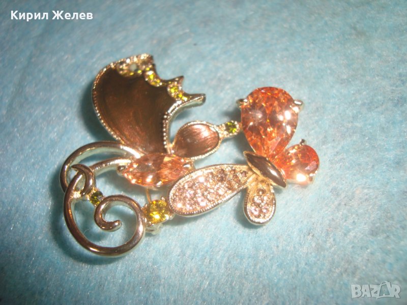 ЕМАЙЛИРАНА СКЪПОЦЕННА ПОЗЛАТЕНА БРОШКА ПЕПЕРУДА БОХЕМСКИ КРИСТАЛИ и ЦИТРИН АРТ-НУВО СТИЛ 26272