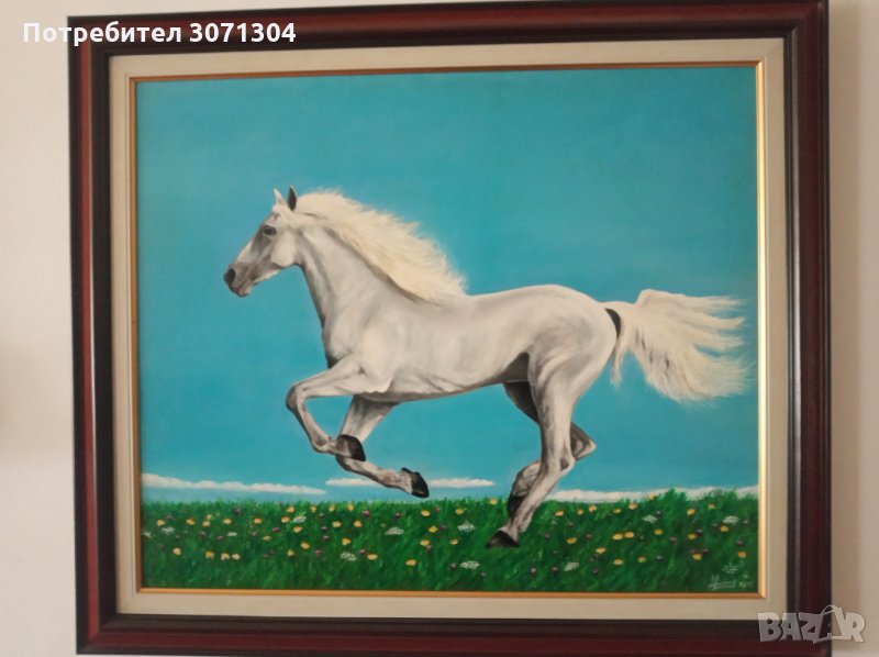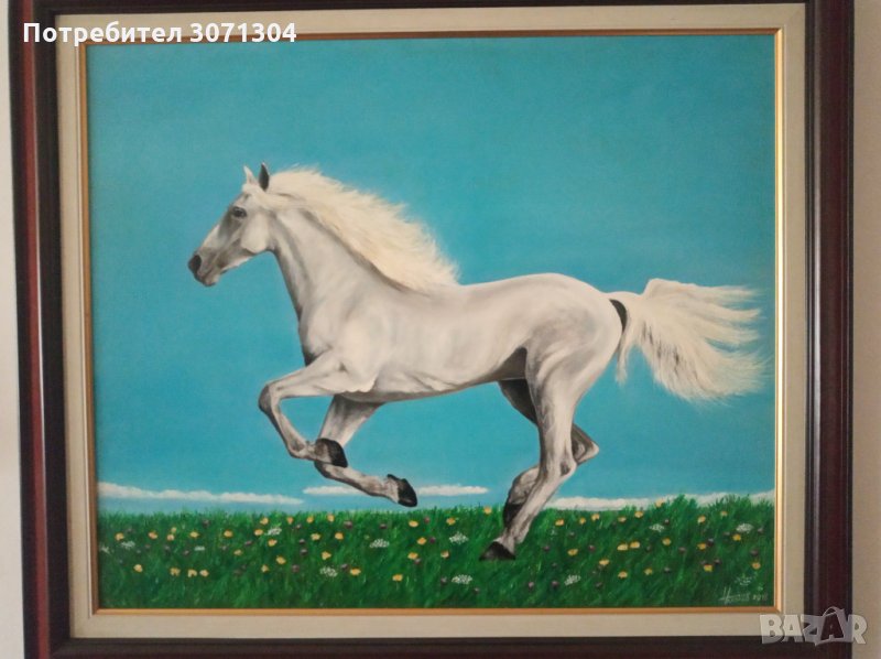 Маслени бои върху платно с рамка и подрамка размери на рамка ширина 72см на височина 62см.от автора.