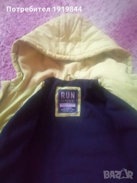 Яке за момче на LC Waikiki. С полар от вътрешната страна. Якето е зимно, но за по- топли зимни дни. Качулката не се маха. Джобчета с цип. Размер до 134см.