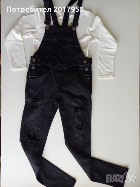 Черен дънков еластичен гащеризон- размер 146, но е умален и по-скоро реалният размер е 134см, носен само няколко пъти- цена 9 евро;