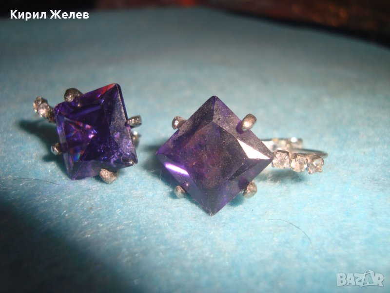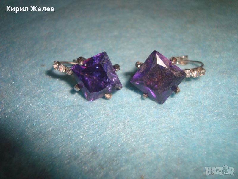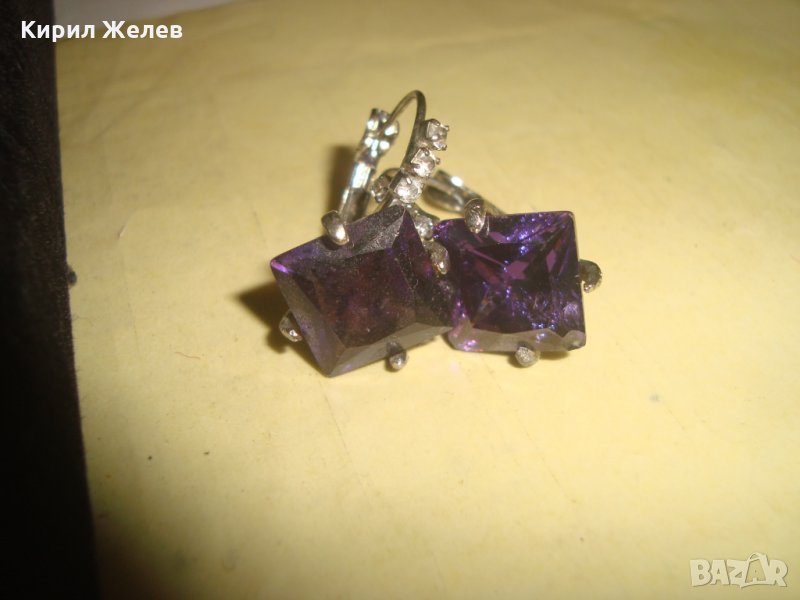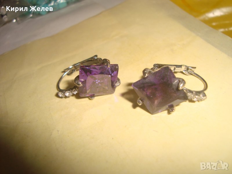 ВИНТИДЖ СКЪПОЦЕННИ СРЕБРИСТИ ОБЕЦИ с ГОЛЯМ ФАСЕТ АМЕТИСТ и ЦИРКОНИ 26682