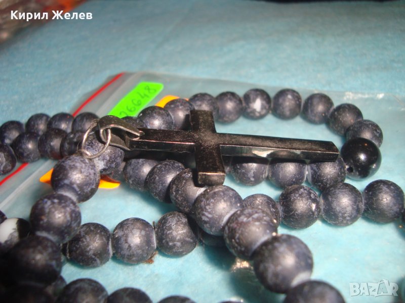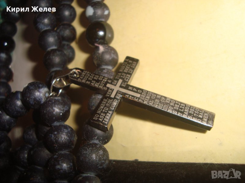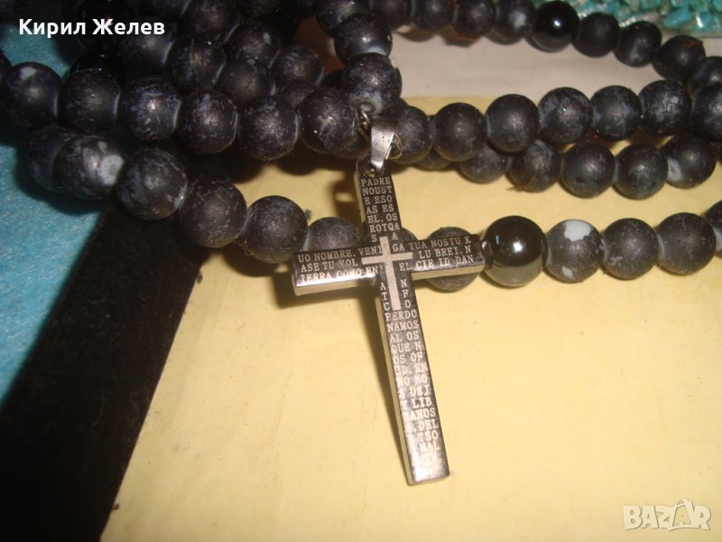 МОДНО КОЛИЕ с КРЪСТ от НЕРЪЖДАЕМА СТОМАНА МЪНИСТА ЦВЕТНО СТЪКЛО КАМЪНИ 26648