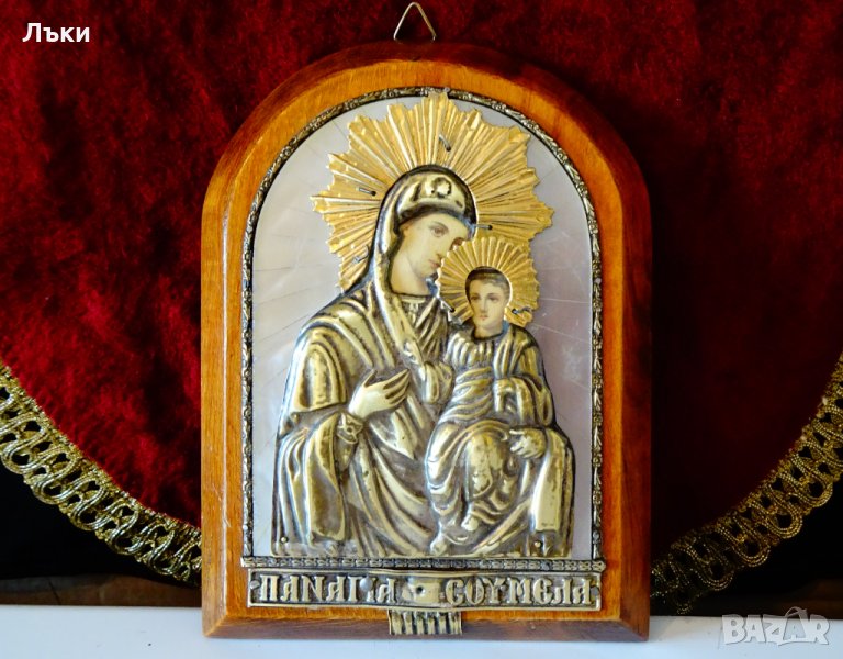 Старинна икона,ръчно изработена с обков от позлатен месинг и