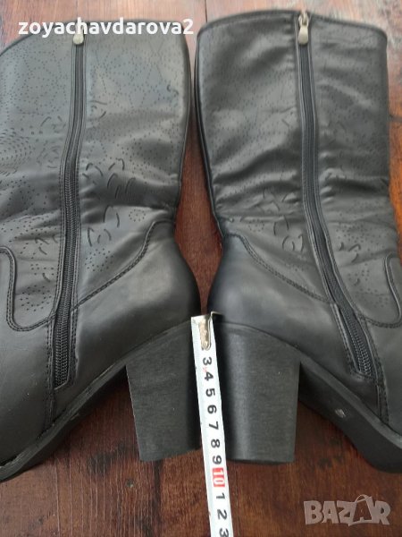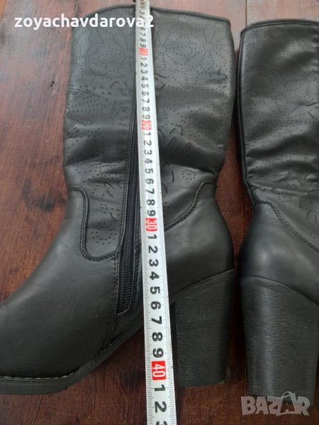 ДАМСКИ БОТУШИ НОМЕР 40, ЕКО КОЖА, ЦВЯТ ЧЕРЕН, НА ТОК, ВИСОКИ, ОТВЪТРЕ ПОДПЛАТЕНИ С ТОПЪЛ ХАСТАР (ВИЖДА СЕ НА ЕДНА ОТ СНИМКИТЕ), ВИСОЧИНА НА ТОКА 8 СМ, ДЕБЕЛИНА НА ТОКА 4,5 СМ. ЦЯЛОСТНА ВИСОЧИНА НА БОТУШИТЕ 41 СМ. БОТУШИТЕ СА ОБУВАНИ ЕДИН ЕДИНСТВЕН ПЪТ НА СУХО ВРЕМЕ И ВЪВ ВЪТРЕШНО ПОМЕЩЕНИЕ.