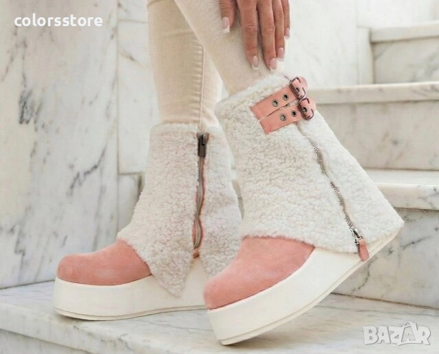 Боти на платформа - бежово с розово велур - BPK55 → Обява 34808208