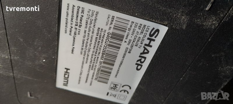 от телевизор Sharp, модел 40AJ2E цената е за ЛЕНТА БРОИ тествана от нашия техник