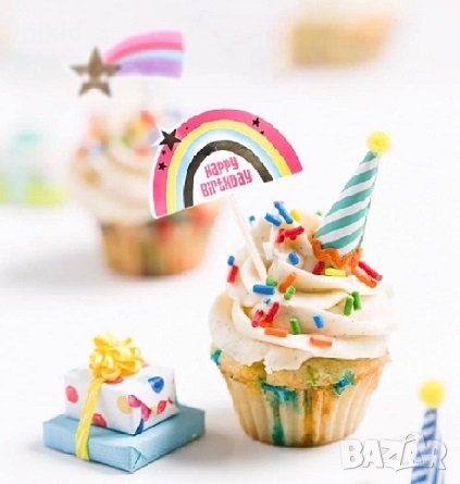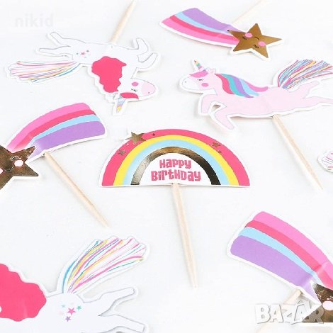 1 вид сет топери и кошнички капсули за мъфини кексчета Еднорог unicorn дъга → Обява 34811608