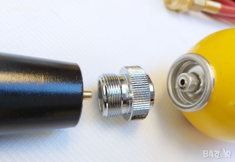Адаптер/конектор газова горелка присъединяване 1”/25,4мм. към флакон газ 7/16-10,5мм → Обява 34812248